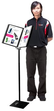 Brochure Browsing Stand Product Code: D1-BBS Dimensions: A4 Sheet Material: Steel Pole base with ABS display rack Weight: 9.8kg Height: 96cm