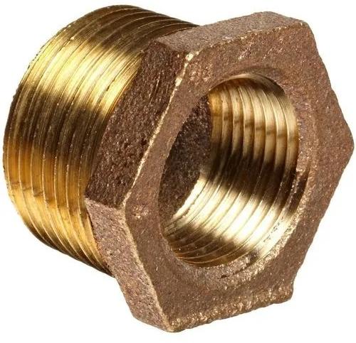 Gold Cylindrical Plain Polished Bronze Hex Bushing, Connection : Male