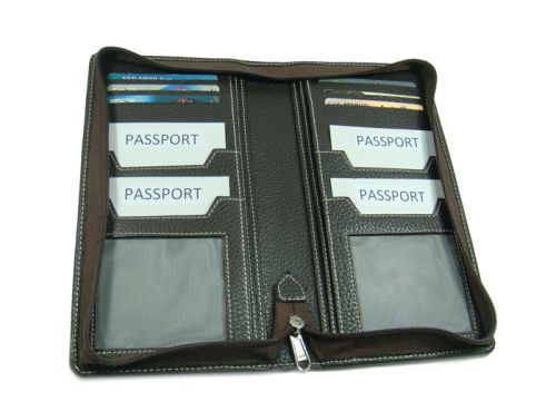 Essart PU Leather Grainy finish Multipule Passports (4) Holder cum travel document holder with zipp closure. 4slots for passports, 6slots for cards, 4 tiny compartments.