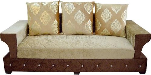 Great color combination and rich fabric for elegant look. Stones add style to this designer sofaset. Heavy density seats adds quality and life to this beautiful sofa. Great making and lounge like luxury seating. Center table not included in price. For indoor use only. Dimensions: 3-Seater: 79 inches (L) x 33 inches (W) x 30 inches (H) 1-Seater: 37 inches (L) x 33 inches (W) x 30 inches (H)