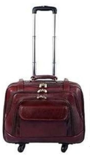 Plain Unisex Brown Leather Trolley Bags Standard for Travelling