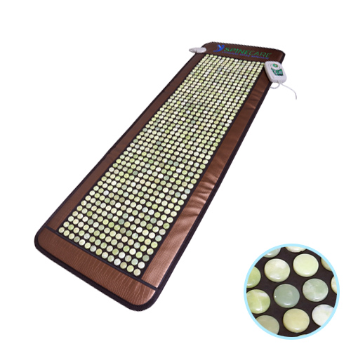 Contact SupplierSCJ - 700 Jade Stone Heating Mat is insert with disks of natural Jade stones. When the Jade stone is heated, it emits infared rays that penetrate the body 14-15cm. The rays not only benefits the muscles on the surface of the body b ut deeper parts of our body. These rays soothe, alleviating backache or other soreness, stiffness or aches. Spine Care Jade stone has an unusual crystal structure and is unique among minerals in showing pyroelectricity, which means that when crystals are heated they produce a postive charge at one end of the crystal and a negative charge at the other.