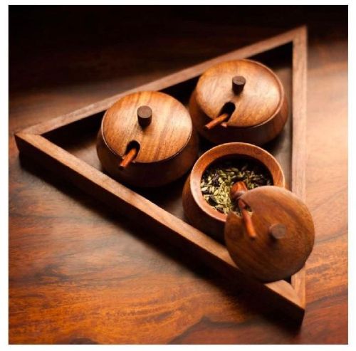 Polished Triangle Wooden Spice Box, Feature : Quality Assured, Attractive Packaging