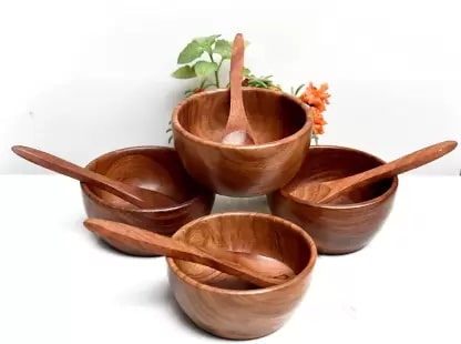 Round Wooden Serving Bowl, For Hotel, Restaurant, Home, Pattern : Plain