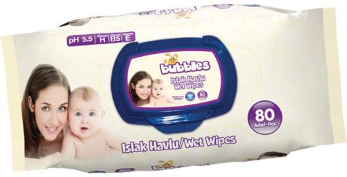 We offer Bubbles Wet Wipes. soft, thick, flexible, durable, wet wipes are hygienic and alcohol-free and cleans the skin. for more information please contact us.