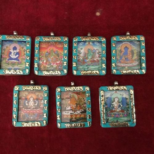 Buddha & buddha deities gods and goddess thanka Pendants as well as auspicius signs pendant, made of white metal.