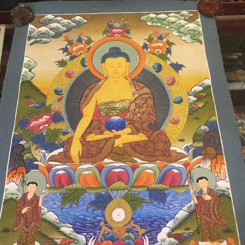 Free hand painting of Shakyamuni buddha using real gold dust.