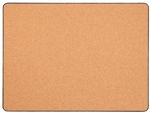 The familiar natural cork surface with radius corners accented by a brown vinyl trim. Boards are equipped with three hangers for vertical or horizontal mounting.