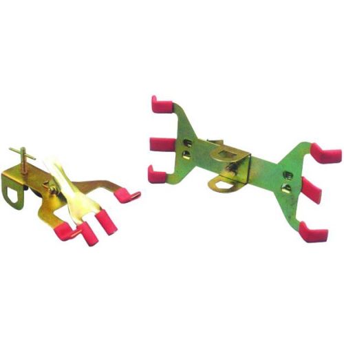 Made of thick mild steel sheet metal die pressed with self closing jaws and ends covered with rubber to clamp burettes. The clamps fit on to support rod up to 18 mm diameter and tightened with a thumb screw.