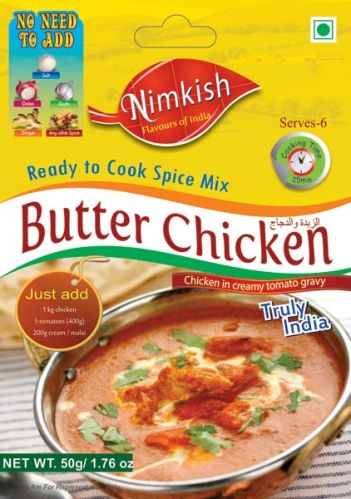 We are offering butter chicken.chicken in creamy tomato gravy. Making indian dishes has never been this easy. For hassle free cooking, just add nimkish ready to cook spices and your dish is ready. No need to add onion, ginger, garlic, salt or any other spice. Benefits of using nimkish ready-to-cook spices are plenty but we have listed some for you – • same taste every time you cook • saves time and money as no need to chop onions, ginger and garlic • no preservatives, artificial colour or flavour • 100% natural spices • iso 22000 : 2005 certified, haccp