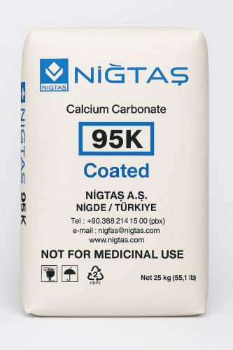 Contact SupplierNiğtaş 95K is a high-purity, ultra-fine coated natural calcium carbonate manufactured in Niğde, Turkey. It is designed for industrial applications requiring excellent whiteness, controlled particle size distribution, and consistent surface properties. The product is processed under internationally certified quality systems including ISO 9001, ISO 14001, ISO 22000, ISO 22716, and OHSAS 18001.