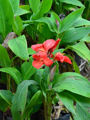 Canna is a genus of 10 species of flowering plants. The closest living relations to cannas are the other plant families of the order Zingiberales, that is the Zingiberaceae, Musaceae, Marantaceae, Heliconiaceae, Strelitziaceae