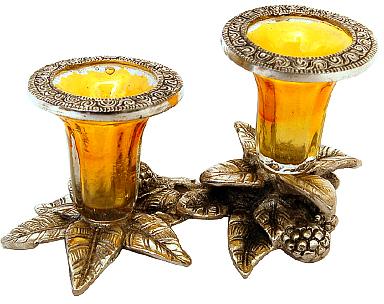 Artistically crafted dual white metal candle holder with detailed carvings in leaf & floral designs. A divest juncture of two holders. One candle on each can be lit on the intricately carved glass holder on its beautifully designed base. The beautiful white metal base adds beauty to its charm and adds grace to your home decor.