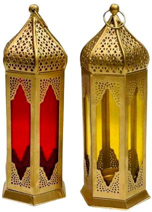 Simna International Gold Glass Pattern Candle Lantern, Style : Vintage