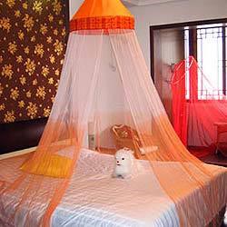 Canopy mosquito nets offered by us are made of polyester (75 denier, mesh 156) and are offered in circular shapes. The stainless ring is fold-able (these pop-up when using), which makes these canopy mosquito nets light weight as well as very easy to pack in a small nylon bag.  Additional Information Ring diameter is 65 cm Ring Height 250 cm Ring Circumference at bottom is 1,250 cm