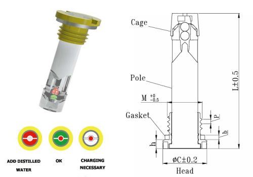 It will provide a bright green indication if the battery is charged,a dark indication if the battery is discharged,and a clear and bright indication if the electrolyte level is low.