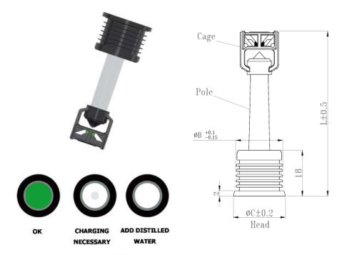 It will provide a bright green indication if the battery is charged,a dark indication if the battery is discharged,and a clear and bright indication if the electrolyte level is low.
