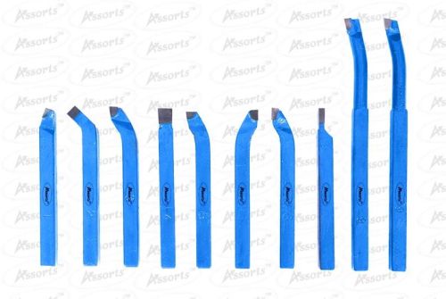 Description: 10 Piece Carbide Brazed Tools Set for complete lathe operation. Perfect to use on small hobbyists lathe. The Set Includes Following; a. 2 Boring Tools b. 1 Parting Tool c. 1 Facing Tool d. 6 Pcs. of RH & LH Turning Tools. Shank Size available : 8 mm, 10 mm & 12 mm Sq. Please visit us at www.assortsmachinetools.com to see our extensive range of machine tools products Or send us an email at sales@assortsmachinetools.com for any further information or enquiry.