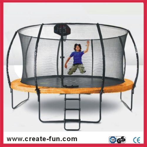We are offering carbon fiber trampoline. Big round trampolines with carbon fiber safety net and basketball hoop with ladder and color spring cover pads