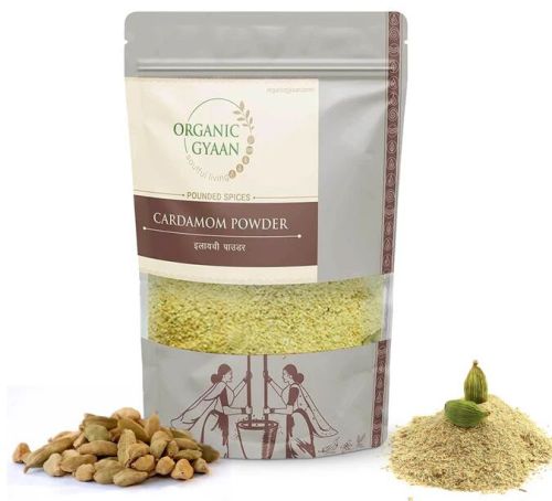Organic Gyaan offers pounded cardamom powder which is authentically processed in a wooden mortar. This is the speciality of our spices. We process them in an organic manner which helps retain the original taste, flavour, aroma, and nutrients of the spice. Furthermore, we are organically certified and we pack our spices in the most hygienic way.