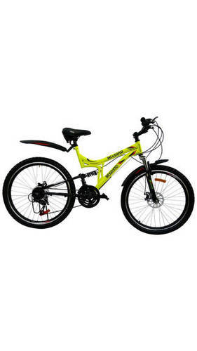Super Stylish Sturdy But Light Weight Suspension Frame In Flurocent Yellow Color, 21 Speed Shimano Grip Shifters Derailleurs, Handlebar With Threadless Stem & Threadless Front Fork, Double Wall Alloy Rims, Front Disc Brake & Rear V-Brakes