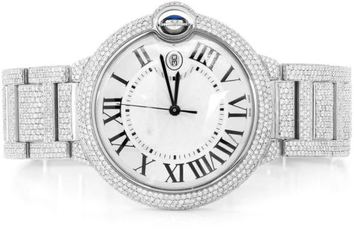 Contact SupplierCartier Ballon Bleu Stainless Steel Fully Iced Out Classic 38.00mm Luxury Watch with 17.00ctw Diamonds Brand: Cartier Model: Ballon Bleu Dial: Fully Iced Out with Diamond-Set Indices Case Size: 38.00mm Case Material: Stainless Steel Bezel: Fully Iced Out Bracelet: Diamond-Set, Fully Iced Out Total Carat Weight: 17.00ctw approx. Functions: Hours, Minutes, Seconds, Date Design: Classic Cartier Ballon Bleu with an Exquisite Diamond-Set Finish The Cartier Ballon Bleu WSBB0049 is a magnificent blend of luxury and sophistication. This stunning timepiece features a 38mm stainless steel case that is fully adorned with 17.00 carats of dazzling diamonds, ensuring a sparkling presence on any wrist. The dial is also fully iced out, showcasing Cartier’s signature elegance with diamond-set indices.