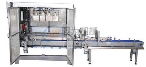 Structural framework is welded. strong and durable and has adjustable base functions, the main lifting platform USES the SEW motor drive, entry speed conveyor belt to separate infeed case, stack is delivered by roller conveyor. 2.5m length of conveyor to output the stack. All adopt roller conveyor. Adopt German Siemens PLC controlling system, movable and can connect to computer. Will display the fault automaticlly.