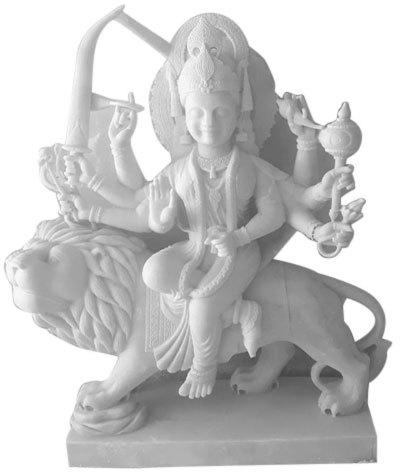 38 Inch Marble Durga Mata Statue, For Worship, Temple, Interior Decor, Pattern : Carved