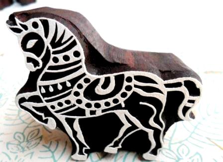 Horse Wooden Stamp, For Textile Purpose, Technique : Carved