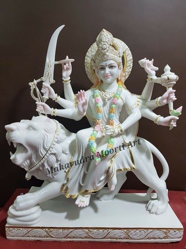 Carved Marble Durga Maa Statue, Color : White