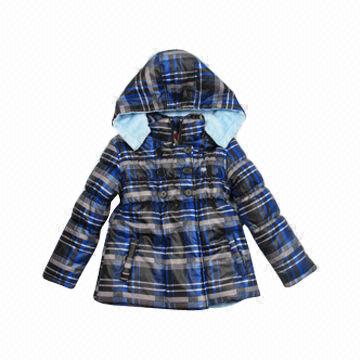 We are offering casual girls jacket. Fabric: 100% polyester checked yard dyed lining: 100% polyester padding: 1,800g sizes: 8-16y 6 buttons closure on the front fly.
