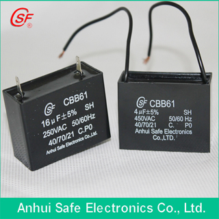 Cbb61 capacitor takes heavy edge metalized alzn film as electrodes and dialectric. It is imprenated with flame-redardant epoxy resin and canned cubic abs or pbt plastic case with characteristics of small size, reliable performance and long endurance.