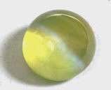4.04 cts., 8.7mm round cab, medium green yellow color, transparent eye clean, with weak eye, from Ceylon. Even though the eye is weak, the stone possesses a clarity which is hardly found in big size stone.