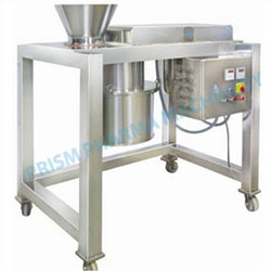 The product is poured into the feed hopper of the Cone Mill. In the conical screen chamber, a rotating impeller imparts a vortex flow pattern to the in feed product. The product is forced outward to the screen surface by centrifugal acceleration, ensuring continuous delivery into the "action zone" between the screen and impeller. No heating of product during granulation / sizing operation, due to better air circulation and lesser impact action. In the "action zone" the material is uniformly sized and instantaneously passed tangentially through the screen openings. The finished product is discharged at the bottom of the milling chamber.