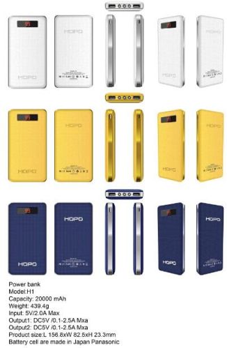 We are offering cell phone chargers. 1.item no.:h-1 2.battery:l-ion battery 3.capacity:20000mah 4.input:5v2.0a 5.output1:5v2.0a max;output2:5v2.0a max 6.size:l156.8*w82.5*t23.3mm 7.weight:439.4g 8.cycle life:�500 times 9.working temperature:-10�-40� 10.storage and transportation