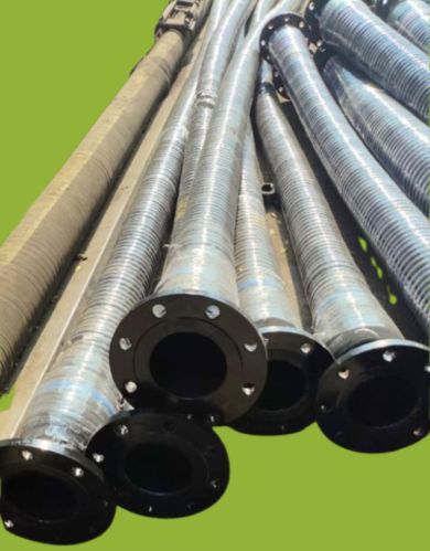 Contact Suppliersandhya enterprises manufacturer and supplier of cement grounding rubber hose.rubber hose for cement grouting meets is : 5137 w.p. 10kgfcm2 min. B.p. 40 kgfcm2 25.0 31.0 38.0 50.0 63.0 75.0 100.0 125.0 150.0 200.0mm 250.0mm tube : highly abrasion resistant soft natural rubber compound. Reinforcement : wovenbraided or spirally wound textile of high strength synthetic fibres. Electrical bonding : low resistant electrical bonding wire in-corporated between the reinforcement plies to pro vide electrical continuity along the whole length of the hose. Cover : cloth marked finish cover, resistant to weather and abrasion. enterprises an iso:9001;2015 certified company is manufacture and supplier of cement feeding rubber hose as per is:5137:990 specification: size: 3” id to 16” id end fitting: ms flange as per asa 150 # ansi 16.5 drilled and din specification. working pressure -10 to 15kg/cm2 color: black vaccum:500 to 700hg temperature- 150deg c top: plain and corrugated. lining : synthetic rubber high ablation resistance. reinforcement: high quality and heat resistance fabric and tyre cord reinforcement. helical wire: 16 wwg to 8 swg high tensile spring helical wire cover: weather resistance synthetic rubber regular size: sandhyaflex-cfrh-80nb-3inch id sandhyaflex-cfrh-100nb-4inch id sandhyaflex-cfrh-125nb-5inch id sandhyaflex-cfrh-150nb-6inch id sandhyaflex-cfrh-200nb-8inch id sandhyaflex-cfrh-250nb-10inch id sandhyaflex-cfrh-300nb-12inch id sandhyaflex-cfrh-140nb-14inch id sandhyaflex-cfrh-400nb-16inch id A cement feeding rubber hose, also known as a cement discharge hose or cement delivery hose, is a specialized hose used for the transfer of cement or concrete in construction and industrial applications. It is designed to withstand the abrasive nature of cement and concrete mixtures while providing a flexible and reliable conduit for their transportation. Cement feeding rubber hoses are typically constructed with a durable inner lining made of synthetic rubber or natural rubber compounds. This lining is designed to resist the abrasion and degradation caused by the movement of cement and concrete materials. It is reinforced with multiple layers of high-strength synthetic fibers or steel wire braids to provide structural integrity and resistance to bursting under pressure. The outer cover of the hose is often made of a synthetic rubber compound that provides protection against external factors such as weathering, UV radiation, and physical damage. It may also have a fabric impression or wrapping for added reinforcement and protection. Key features and characteristics of cement feeding rubber hoses include: 1. Abrasion resistance: The inner lining of the hose is specifically formulated to withstand the abrasive action of cement and concrete mixtures, reducing wear and extending the hose\\\'s service life. 2. Flexibility: Cement feeding hoses are designed to be flexible and maneuverable, allowing for easy handling and movement during the cement delivery process. 3. Pressure resistance: The hose is constructed to withstand the working pressures involved in cement and concrete pumping, ensuring safe and reliable operation. 4. Compatibility: Cement feeding hoses are engineered to be compatible with cement and concrete mixtures, ensuring that the hose material does not react or degrade when in contact with these materials. 5. Size and fittings: Cement feeding hoses are available in various diameters and lengths to suit different applications. They can be fitted with standard couplings or connections for easy attachment to pumping equipment or other components of the cement delivery system. It is essential to follow the manufacturer\\\'s guidelines and recommendations for the proper selection, installation, use, and maintenance of cement feeding rubber hoses. Regular inspections and preventive maintenance are necessary to identify signs of wear or damage and to ensure the hose\\\'s integrity and performance. Con