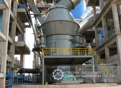 After crushed by hammer crusher, the large materials become small ones and are sent to storage hopper by elevator. When the grinding mill is at work, all the grinding rollers are rolling in the ring, and the materials are driven to the edge of the turnplate by the centrifugal force and fall down into the grinding chambers where the materials are repeatedly pressed, crushed and grinded by the rollers.