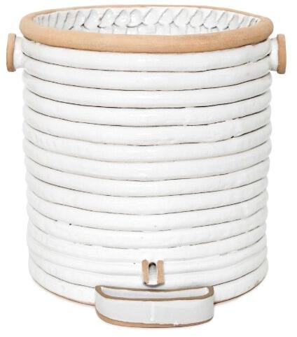 COILED CROCK PLANTER WITH DRAINAGE SPOUT AND TRAY. MADE IN TYLER'S STUDIO FROM LOCALLY DUG WALLOWA COUNTY CLAY, GLAZED WITH ASHES FROM OUR WOOD BURNING STOVE. HAS A RUSTIC FINISH, COLORS & DIMENSIONS SLIGHTLY VARY. ESTIMATED LEAD TIME: 12 WEEKS SMALL APPROX: 15 H x 12 D MEDIUM APPROX: 18 H X 16 D LARGE APPROX: 26 H X 21 D