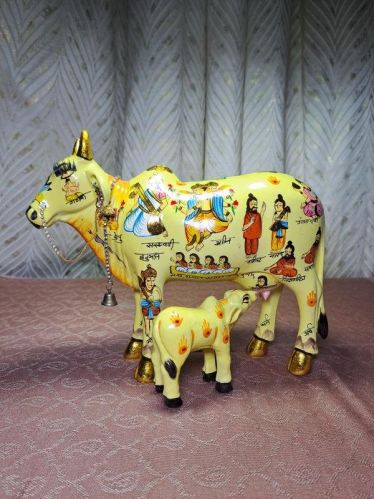 Anthropomorphic Form: Kamadhenu is sometimes depicted with a human head, a cow’s body, a peacock’s tail, and parrot wings.