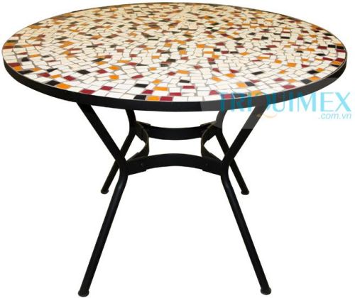 We offer Wrought Iron Table, Ceramic Mosaic Round Table. Round table diameter Ø = 110cm, height 75cm. - Wrought iron table base, tube iron, knock down system, antirust treatment, powder coating. - water proof treatment.