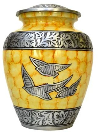 Polished Brass Ceramic Yellow Cremation Urns, Packaging Type : Box