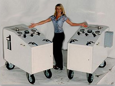 Dual system (Capability) sloped control panel with control valve, pressure gauges, temp gauge, calibration ports, and stopstart push button station