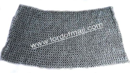 Chainmail skirt made of 9mm flatring wedge riveted with solid rings, skirt protect of around waist with Leather Belt or with stripe.4 in 1 medieval patturen the measurement are Below this large size Lenght is 14" waist is 42" and for medium size is waist.