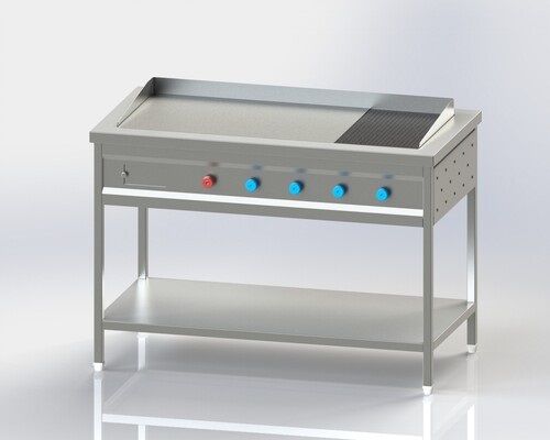 Free standing commercial chapati plate with Puffer. Heavy duty thick M.S plate (Removable) along with Puffer. V-Type HP Burners provided to ensure uniform heating throughout the plate. Pilot Burner provided for V-type Burners. Outer body made in heavy duty gauge of stainless steel 304. Range available with / without under shelf. Range available in electrical or L.P.G/P.N.G. operated. Range can be fabricated in any custom size to suit as per kitchen’s requirement
