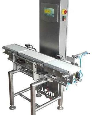 Check weighing system in-line in chain conveyor for semi-automatic check weighing with tare compare carried out by operator