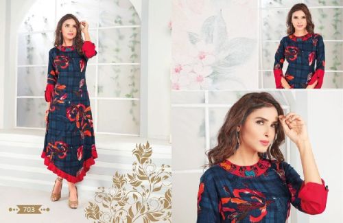 Non Brand Checked Rayon Designer Kurtis, Size : XL