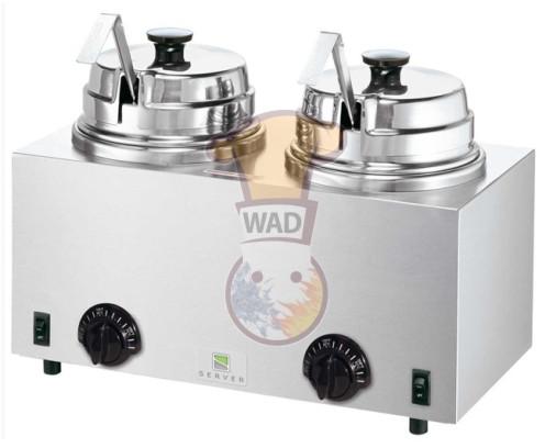 Cheese Heater (Cap: 2.8+2.8 ltr).Capacity : 2.8+2.8 ltr. Stainless steel. dispense Type : Pump. Power: 230 v / 50 hz / 1000 w.. Weight: 7.8 Kg. Dim: 343 x 432 x 400 mm