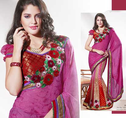 Beautiful Deep Magenta Georgette Brocade, Jacquard & Net Saree is a designer piece styled by our skilled craftsmen. This elegant Chic Lehenga Saree-1421-202 that we offer is beautifully styled with Resham and Sequins and Velvet Patch work.