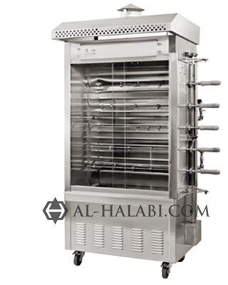 Gas Operated Chicken Grill, Body in S/Steel grade 304, 3 No. Skewers (Each Skewer Having 3 Chickens), 1 Induction Motor, 1 Tubular Gas Burner, 1 Oil Collection Tray, Front Side Temperated clear Glass, High Pressure Gas.