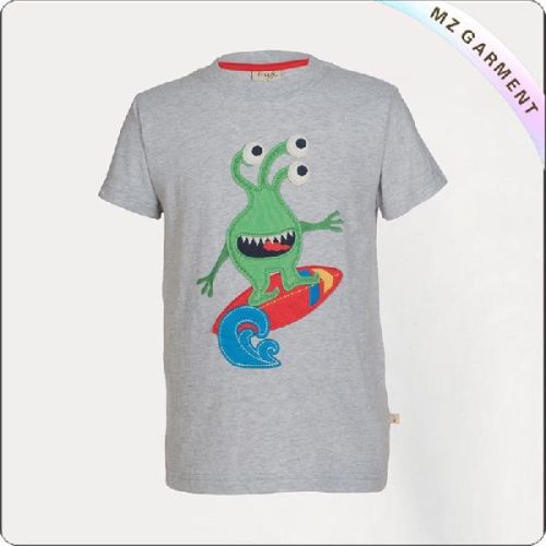 China Children Natural T-Shirt Factory Company Makes Children Natural Off-White T-Shirt, Monster Print, Contains Organic & Recycled Materials, OEM. Type: Children Natural Off-White T-Shirt. Fabric: 100% Organic Cotton. Supply Type: OEM Service. Design: Custom Design. Brand Name: MZ or Customized. Size: 4-12. Color: Customized. Use: Out Wear. MOQ: 500 pcs per Color. Place of Origin: Fujian, China (Mainland).